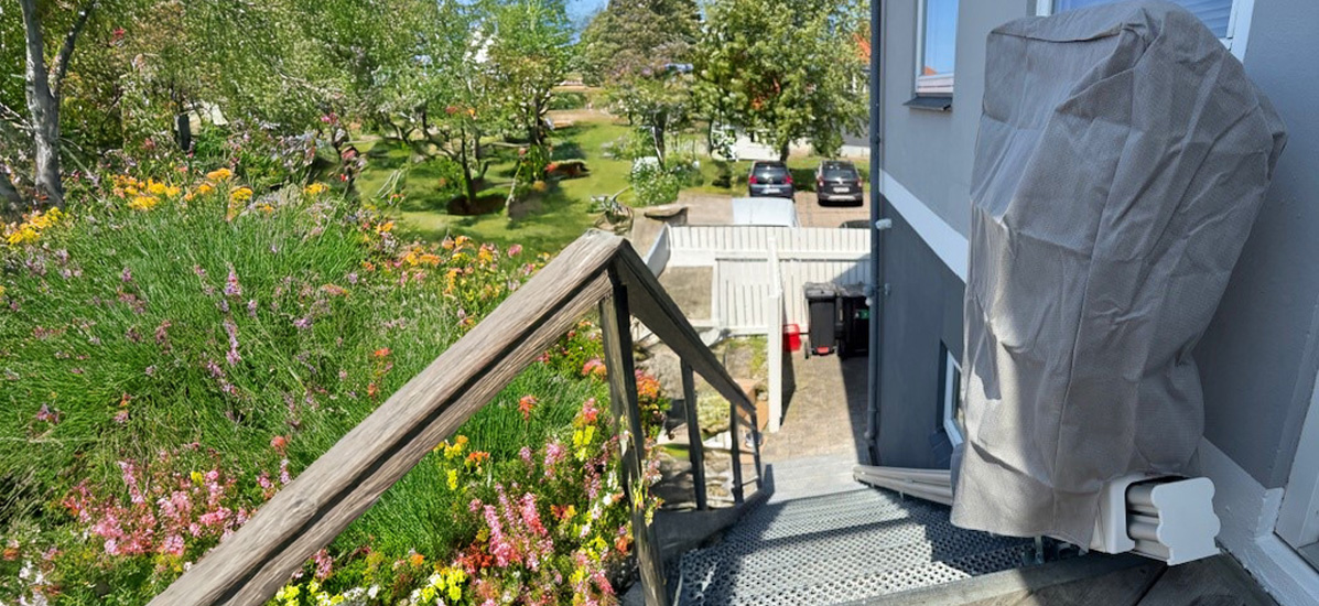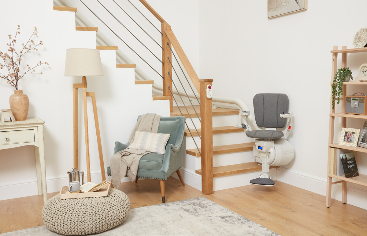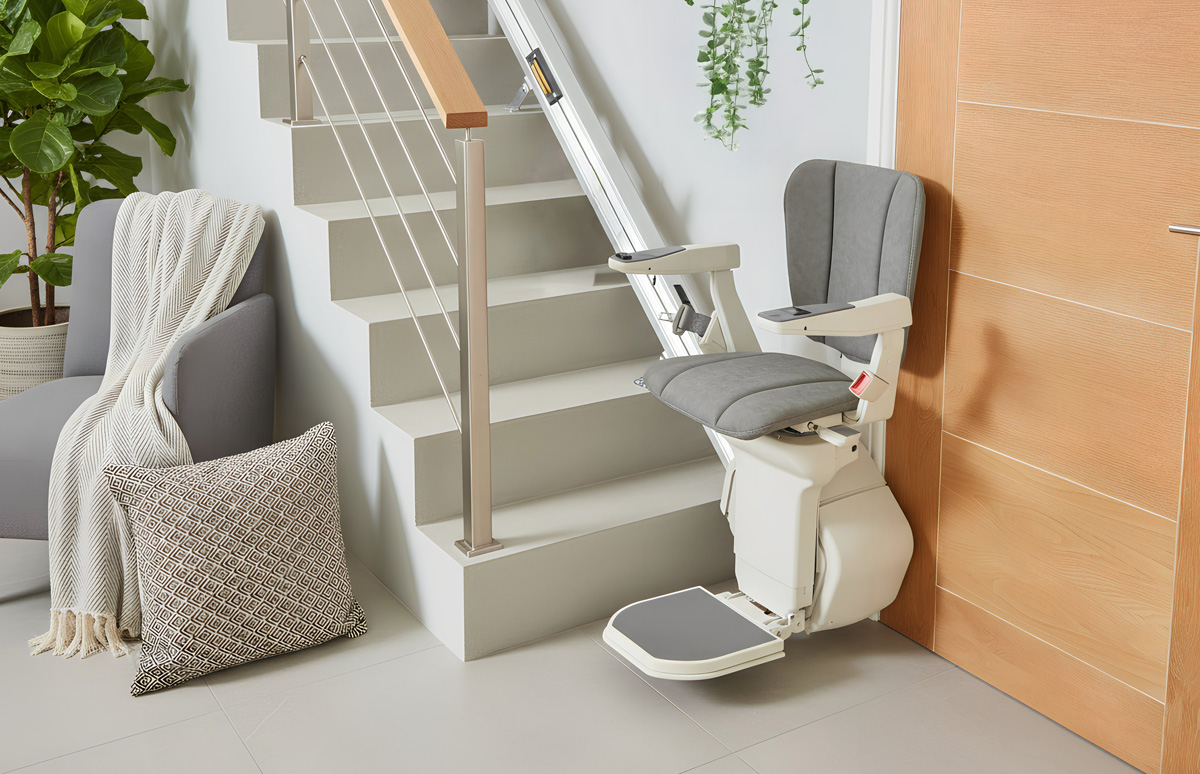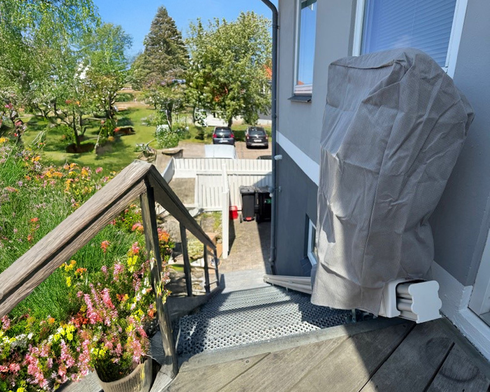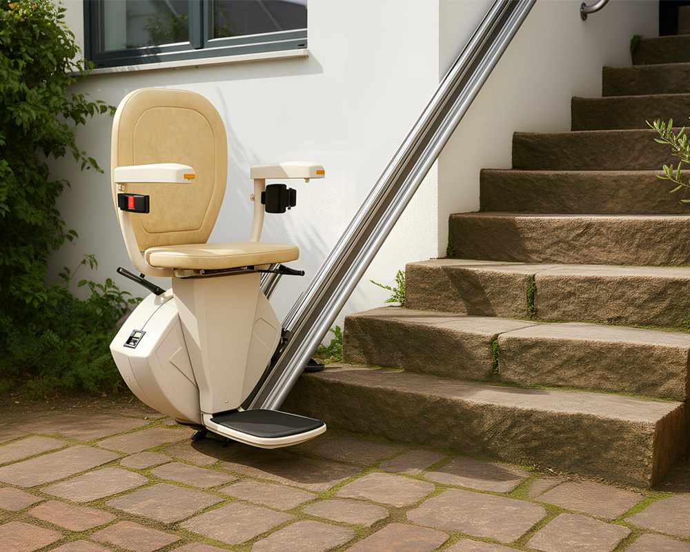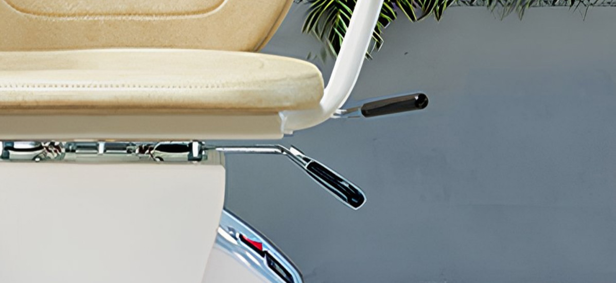 Através da alavanca de rotação manual, a cadeira de escadas roda até 70º no último patamar, permitindo a sua saída de forma segura e confortável.