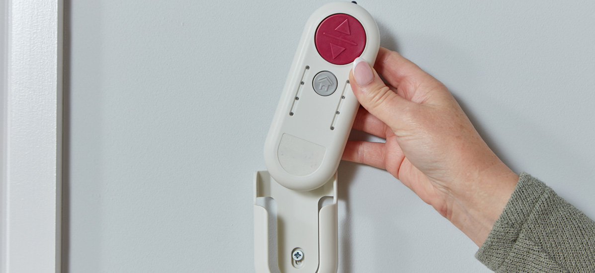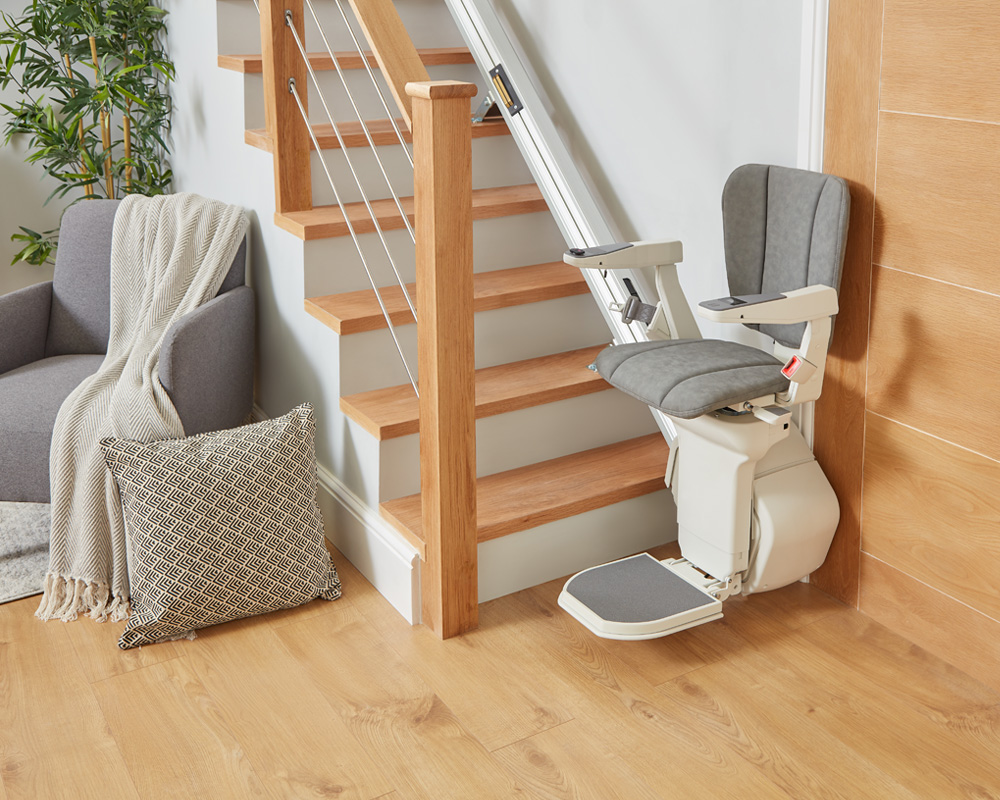 Equipada com 2 comandos de controlo remoto, instalados no topo e na base das escadas, para que possa chamar a cadeira ou enviá-la para a posição de estacionamento quando não está a ser utilizada.